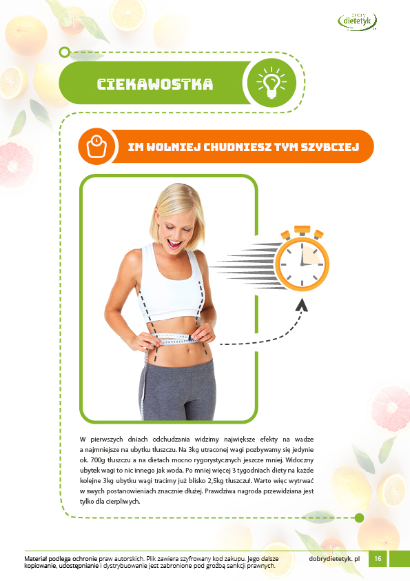 Dodatkowo do opracowanego planu dietetycznego otrzymasz atrakcyjnie przygotowane ciekawostki i wiadomości żywieniowe, które mam nadzieję pozwolą Ci zrozumieć wiele spraw związanych z nurtującym Cię problemem, a także przyczynią się do zwiększenia ogólnej wiedzy żywieniowej.