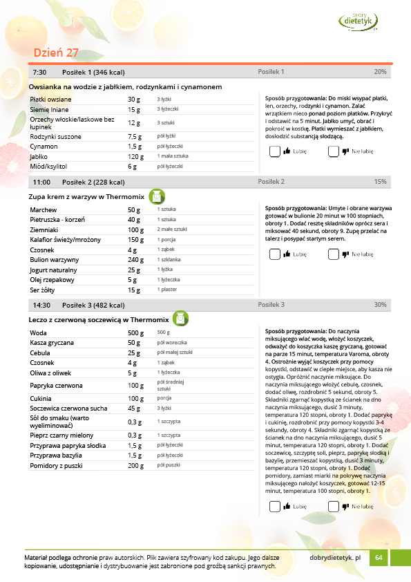 Obok szczegółowego planu dietetycznego otrzymasz również praktyczny poradnik korzystania z opracowanego planu dietetycznego.