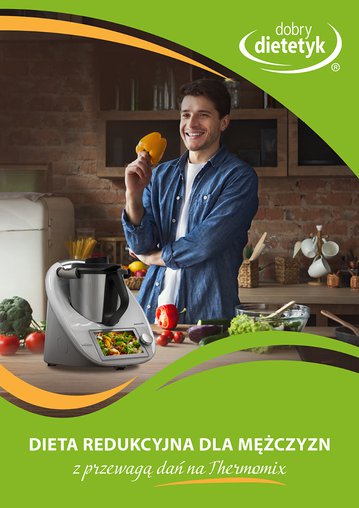 Kompleksowy 30-dniowy program redukcyjny dla mężczyzn uwzględniający w przewadze dania na THERMOMIX. Program zawiera szczegółowy, 30-dniowy jadłospis na 1800kcal uwzględniający 4 posiłki w ciągu dnia. Program realizuje potrzeby odżywcze organizmu mężczyzn a także wymagania związane z najczęściej występującymi wymaganiami zdrowotnymi (regulacja ciśnienia krwi, wspomaganie pracy serca i układu krążenia, regulacja hormonalna). W opracowaniu tej diety uwzględniono dużą ilość posiłków na Thermomix co ma ułatwić stosowanie planu żywieniowego panom posiadającym tego typu urządzenie. Dania na Thermomix zamieszczone w tym opracowaniu nie zawierają typowych przepisów jakie można znaleźć w internecie. Są to dania specjalnie opracowane lub zmodyfikowane pod kątem diety redukcyjnej. Wszystkie porcje są również podawane w przeliczeniu na jedną osobę. Stosowanie tej diety nie tylko przyczyni się do szybkich efektów w redukcji masy ciała, ale także pozwoli poznać nowe, pyszne przepisy na Thermomix.